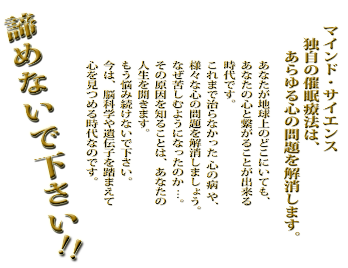 マインド・サイエンス独自の催眠療法で、“心の病”や“精神的苦痛”は治せます!!